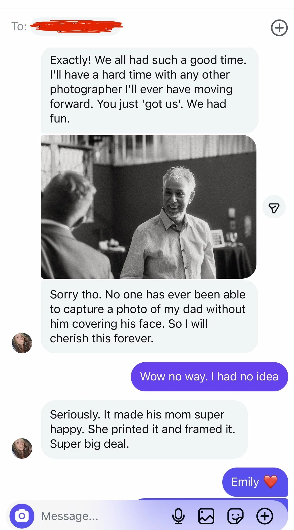 I stumbled into wedding photography almost by accident when a friend needed help. I'm going to be real with you—I didn't get into it because I wanted to "capture life's precious moments." I did it because I got paid and it sounded interesting. But then something happened that completely changed everything. A client told me the picture I took of her dad - him genuinely smiling - was one of the only real, authentic smiles anyone had ever captured of him. Then she told me her dad had passed away a year after the wedding.