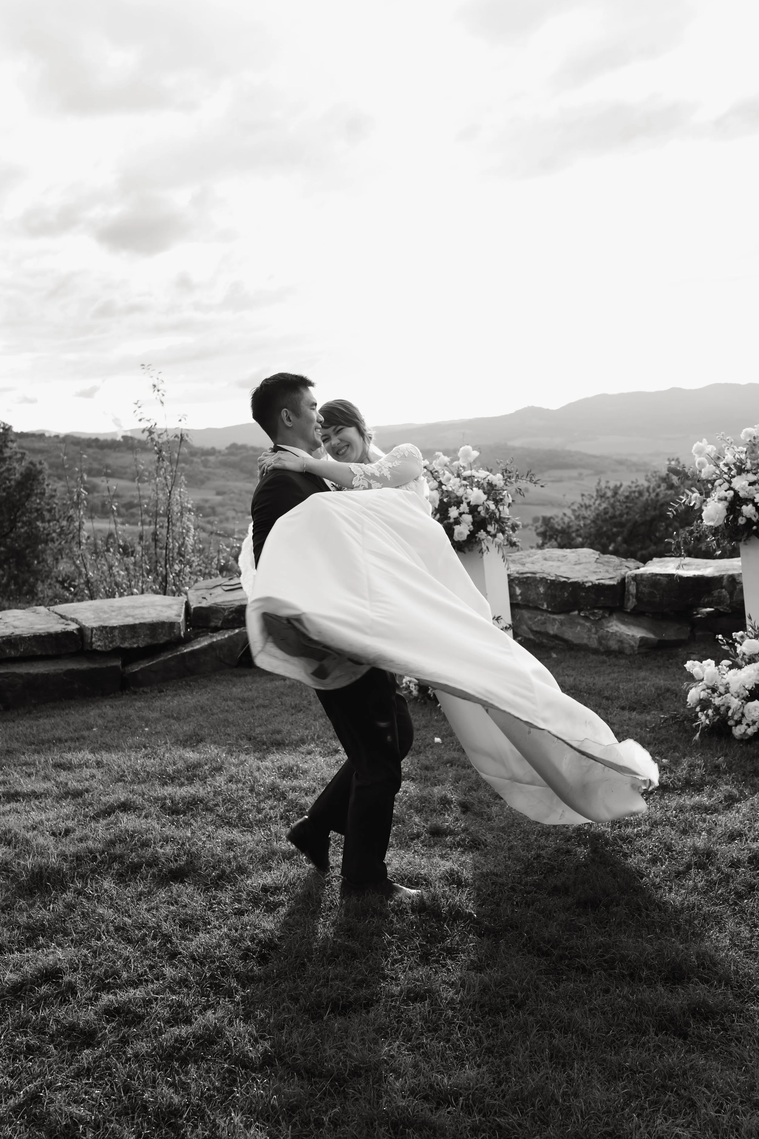What happens when you take two outdoor enthusiasts and have them plan a wedding? Matt and Rachel booked a helicopter and flew into British Columbia’s mountains to get married in the most remote, stunning mountain view lake imaginable.
